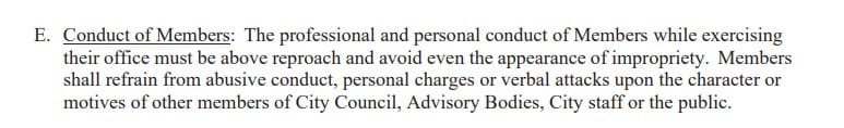 Martha Barragan warned all members of City Council about our Code of Ethics at the June 17th, 2025 meeting and stated that further violations of the Code of Conduct would result in consequences, including removal from boards and commissions.